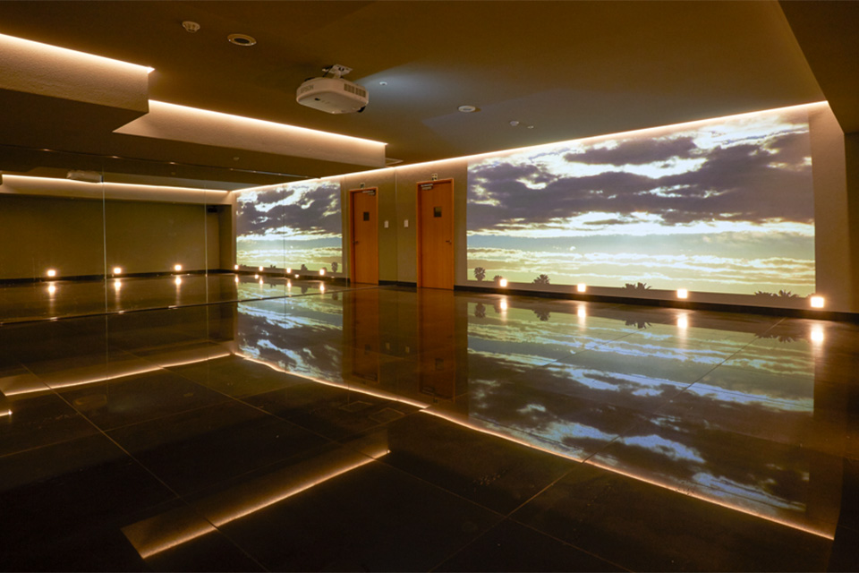 巨大な映像に魅了される溶岩ホットヨガスタジオ(女性専用)